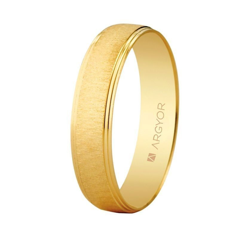 ALIANZAAlianza de boda con terminación mate rugosa texturizada y cantos biselados dobles en acabado brillo. Como todos los anillos de boda Argyor está creado en una sola pieza maciza, sin soldaduras. Este diseño está disponible en diversas variables, como en oro de 18, con diamante o en oro blanco. Los anillos de boda juegan un papel importante en tu gran día, y este anillo es una elección increíble. ORO 1 LEY MATE Y BRILLO MEDIDA 4,5 mm numero de dedo15